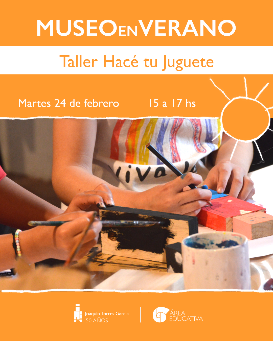 Venía ajugar, explorar, crear y conocer más sobre Joaquín Torres García. En encuentros de dos horas compartiremos actividades en las salas y en el taller. Cada día será una oportunidad para el disfrute y para compartir. Algunas actividades son para infancias y otras son propuestas familiares integradas.